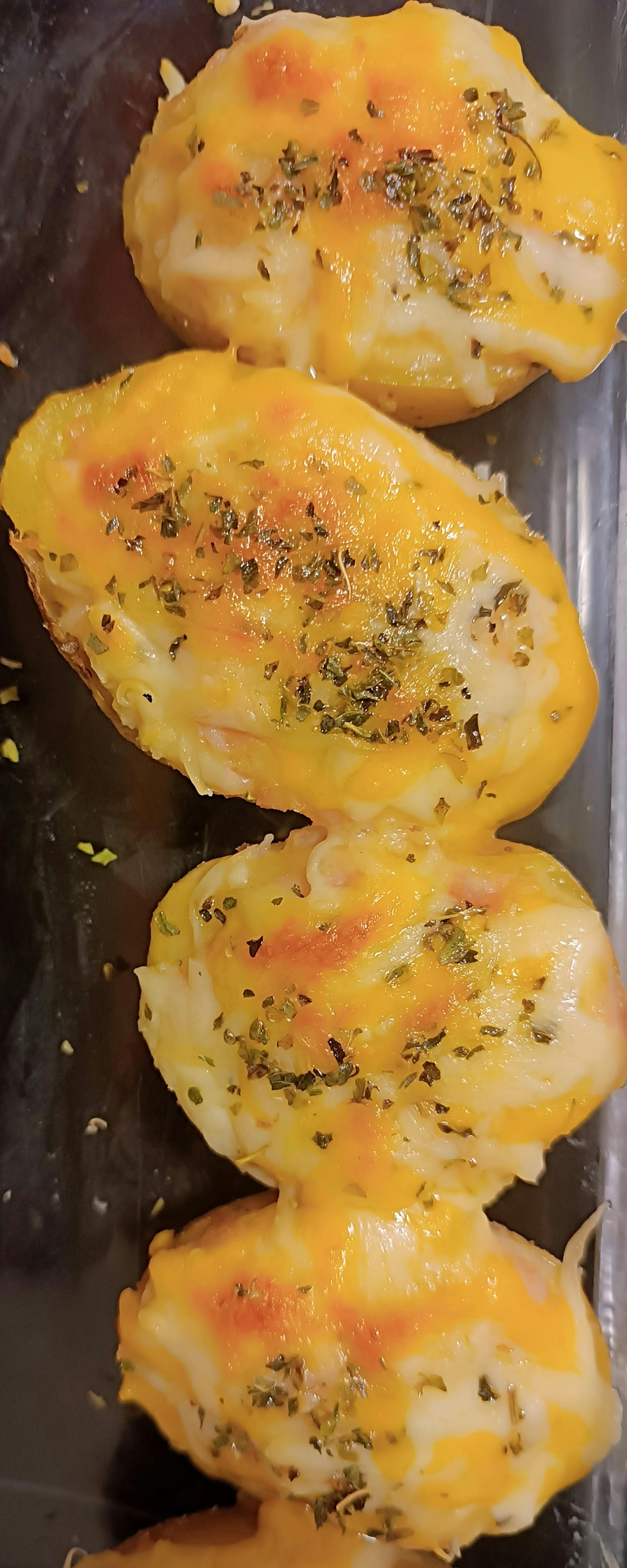 6. Rellenamos las patatas y después las cubrimos con mucho queso rallado y perejil.