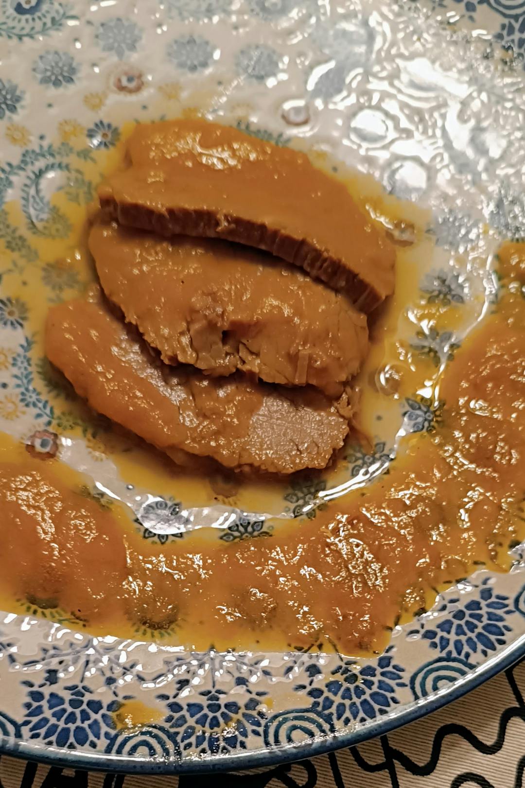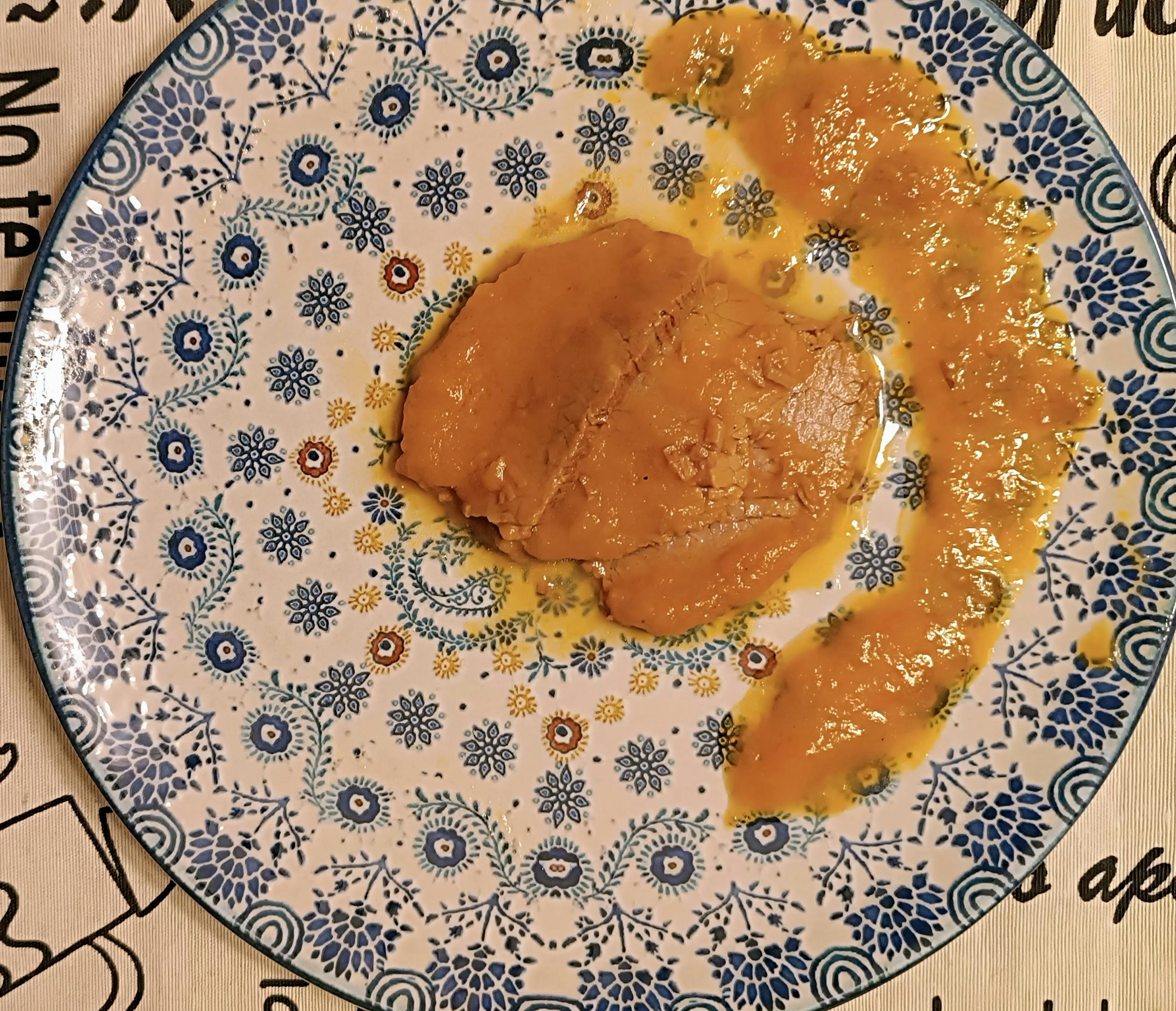 - una vez frío el redondo filetear y poner en una fuente, hechar la salsa sobre los filetes.