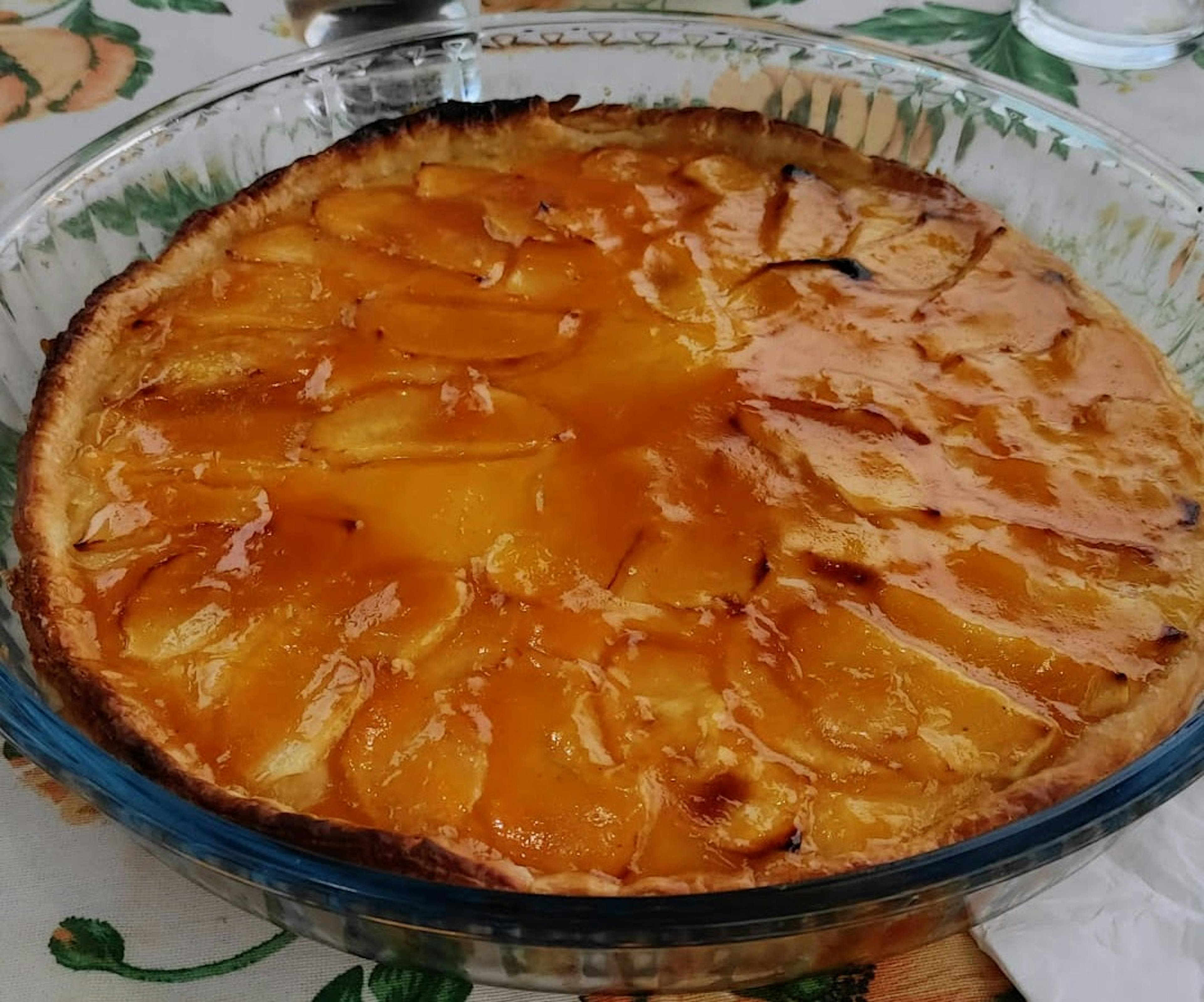 Hechamos la crema pastelera encima de la masa . Y troceamos las manzanas, poniéndoles zumo de limón encima para evitar que se oxiden. Una vez cortadas, se colocan encima de la crema pastelera.