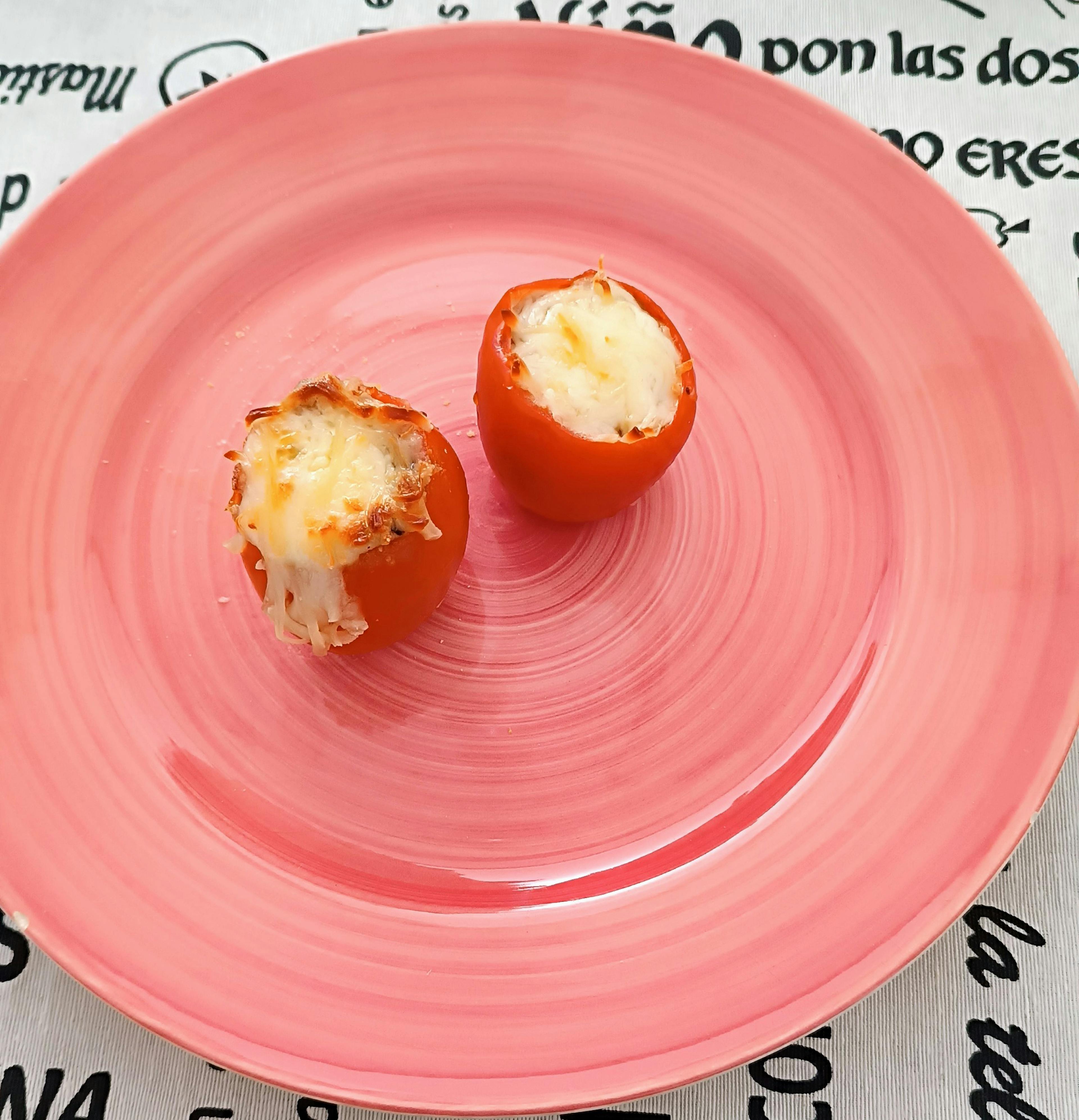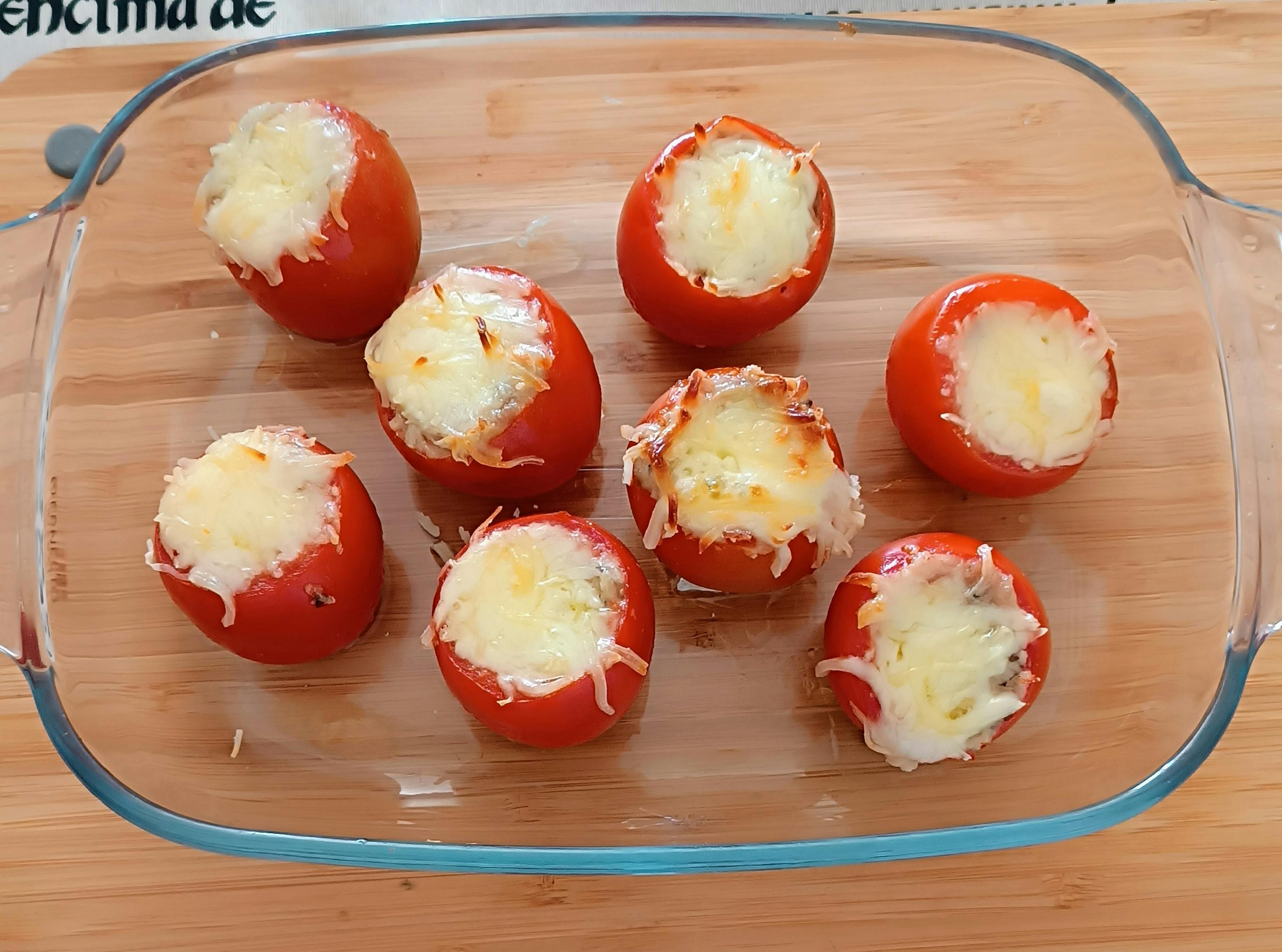 - con el preparado anterior rellenar los 🍅 , una vez rellenos poner encima de cada 🍅 queso para gratinar .